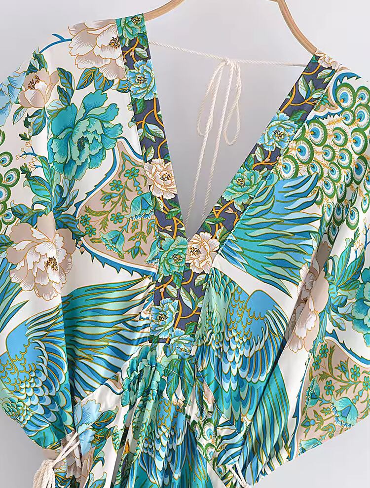 再入荷♡ピーコック柄半袖ドルマンワンピース
