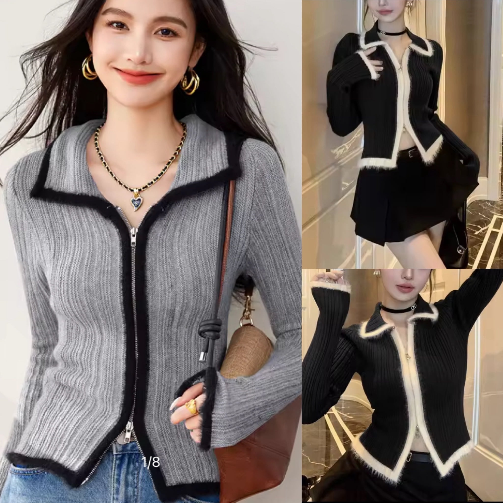 再値下げ♡バイカラーダブルzipニット
