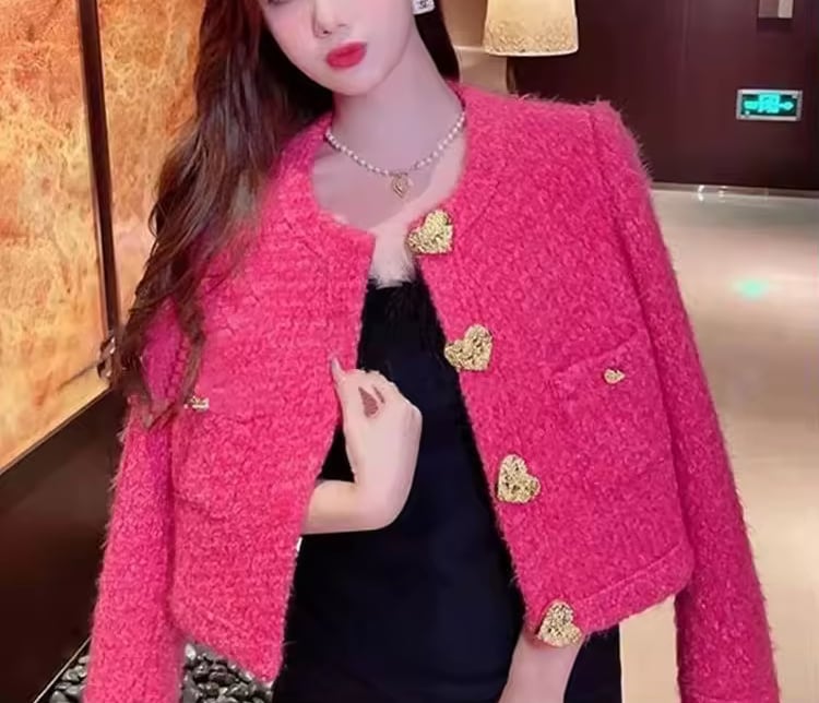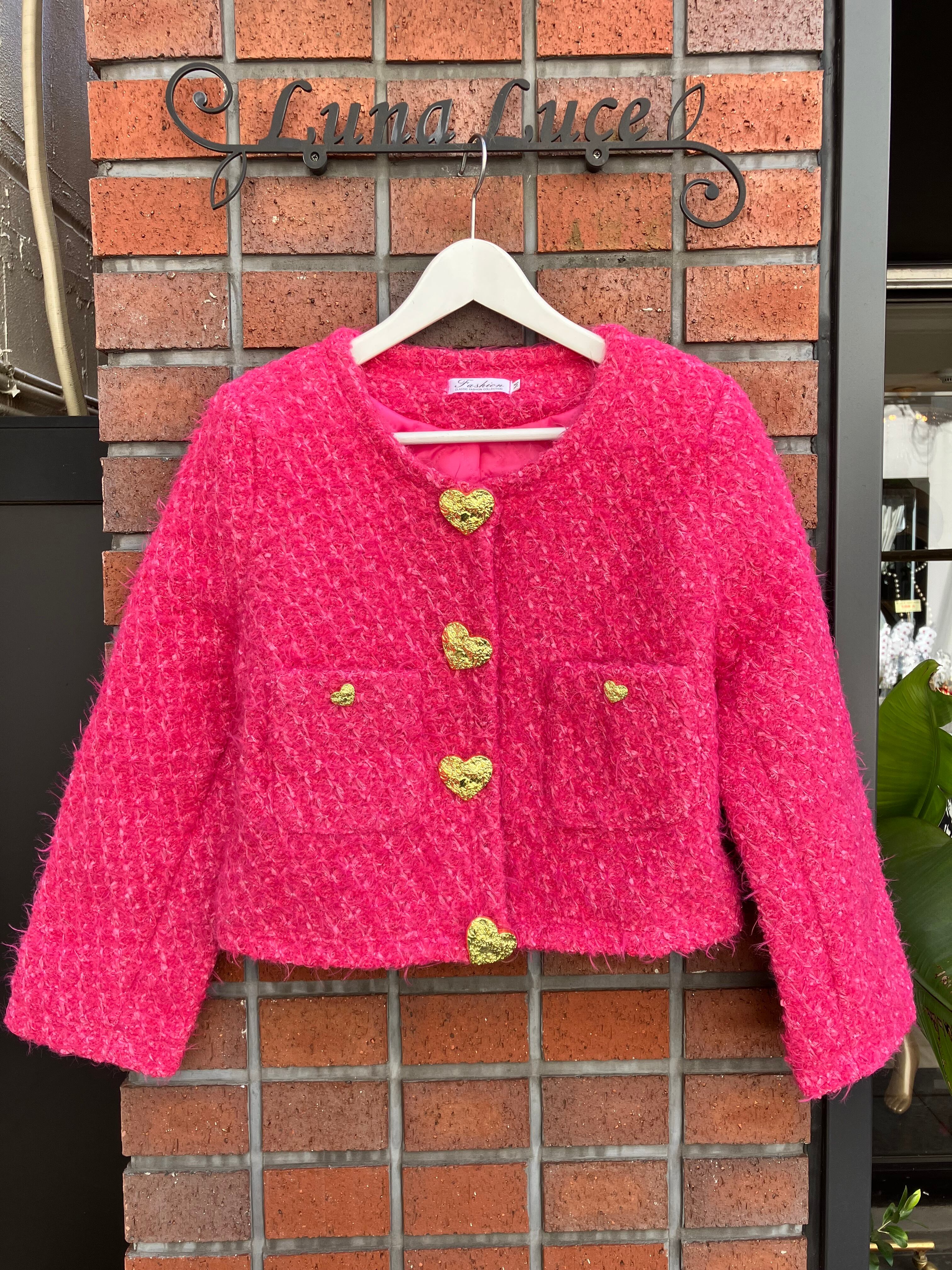 華やかなホットピンクにハートボタンがたまらなくキュートです♡