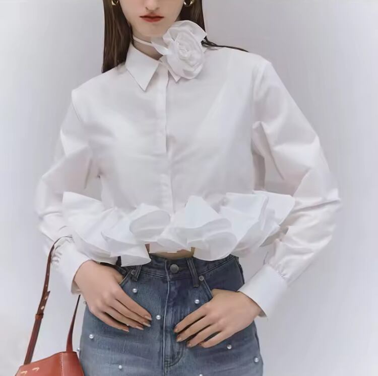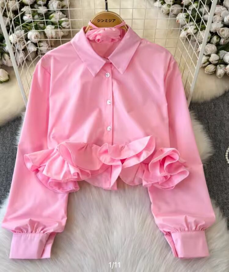 再入荷♡お花チョーカー付きフリルシャツ