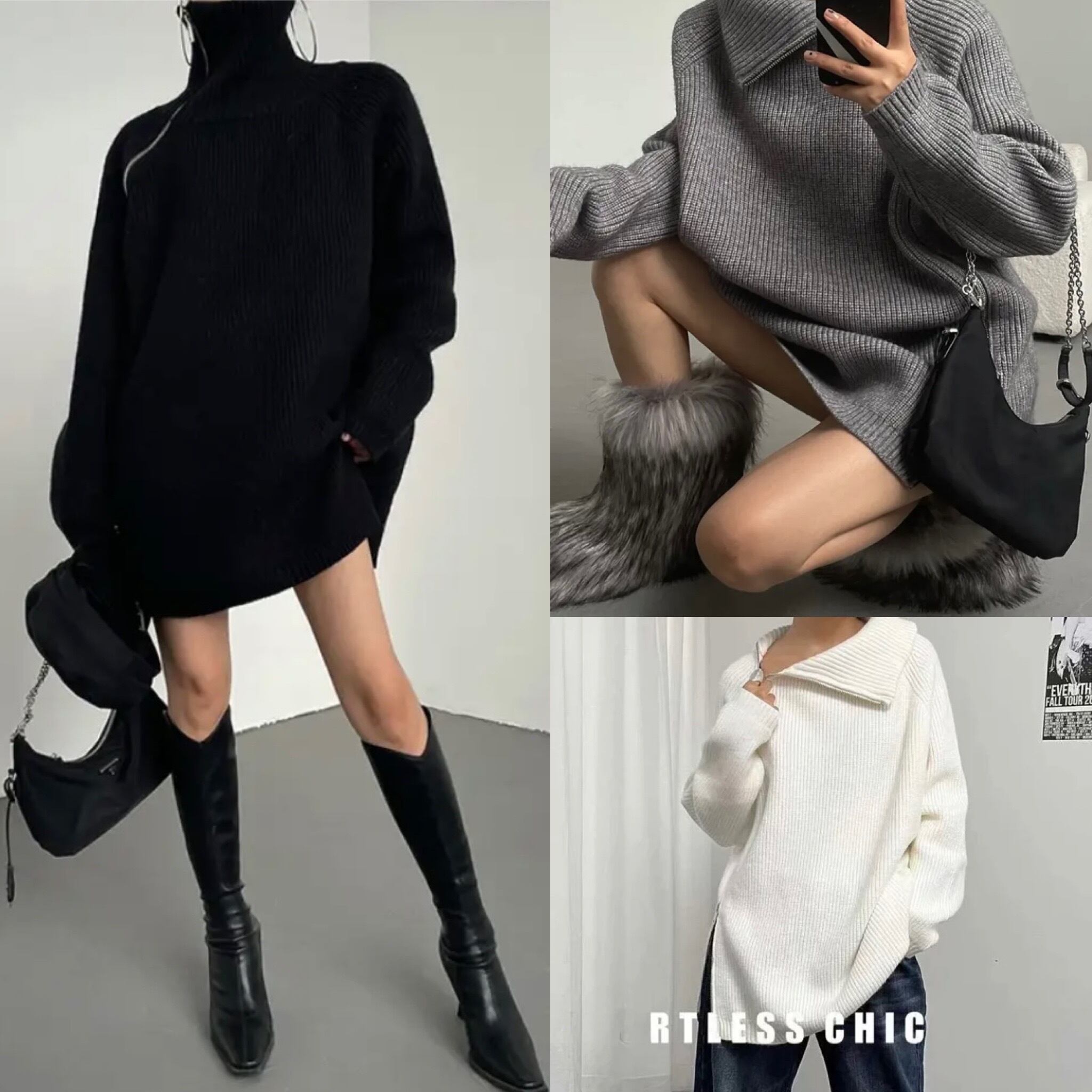 ジッパーの開け閉め具合でさまざまな着回しができるcoolなニット♡