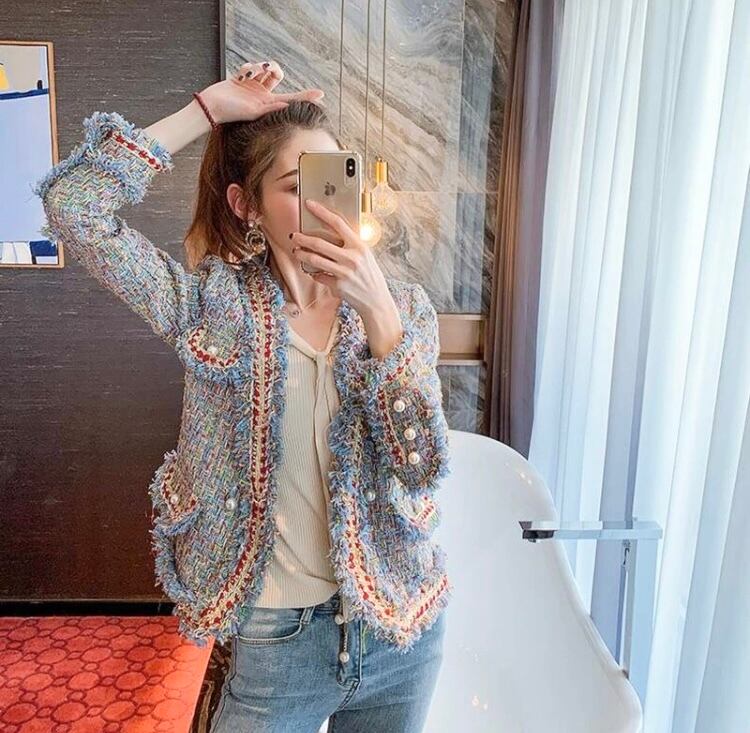 ラメ糸が入った春カラーのジャケットは見てるだけでも元気になれます♡
