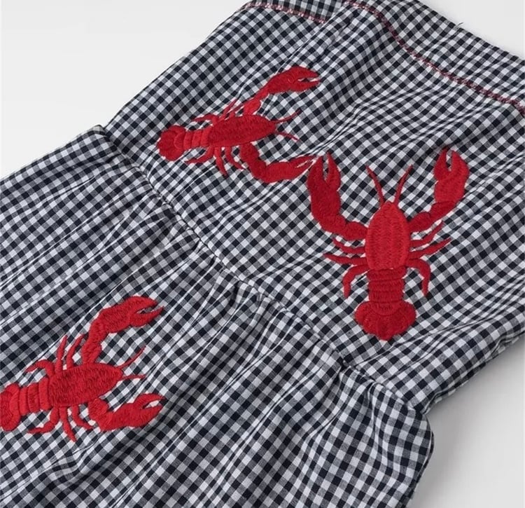 ザリガニの刺繍×ギンガムチェックがとってもキュート♡