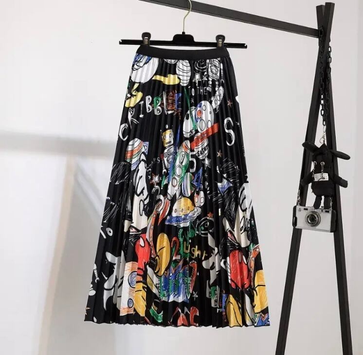 カラフルプリントプリーツスカート