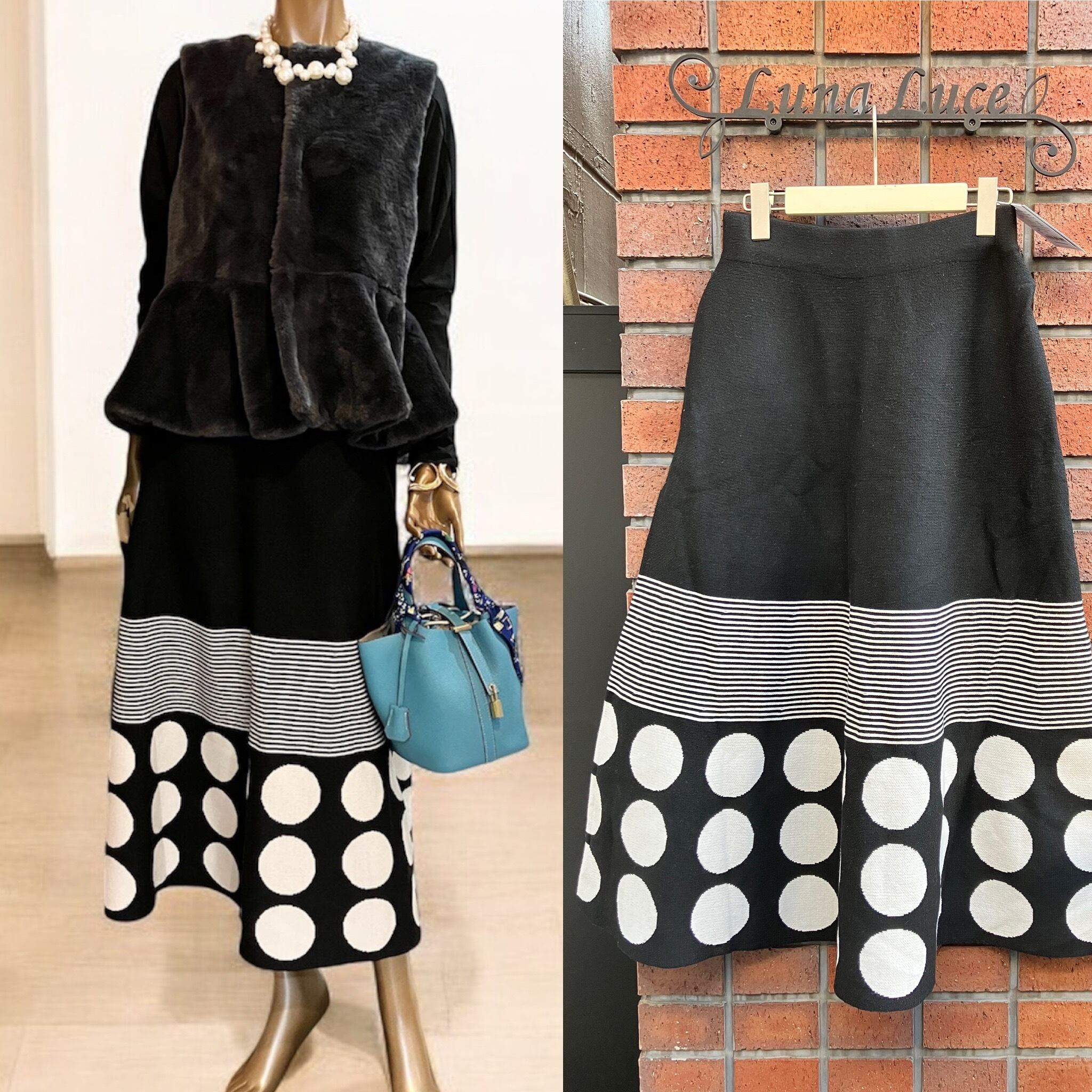ドットボーダーニットスカート
